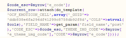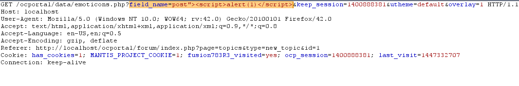 Here the VALUE that is marked with * symbol will be filtered with the XSS filter, and it will be sanitized before displaying it to the user, but they forgot to mark FIELD_NAME in OCF_EMOTICON_CELL.tplfile.\ocportal\themes\default\templates\OCF_EMOTICON_CELL.tpl