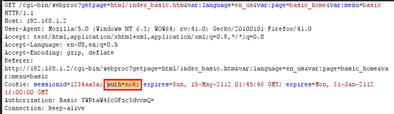 Figure 05: auth token is set to “ok” once after logging into the router. But we could not access any pages just by pressing the back button after logging out.