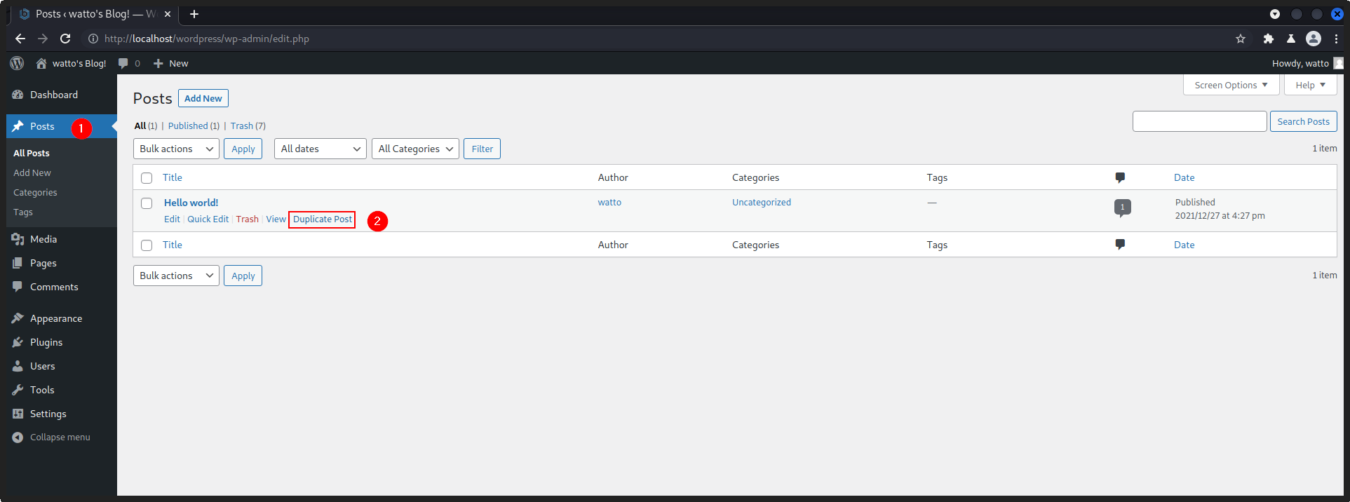 Figure 05: Duplicate the “Hello world!” post