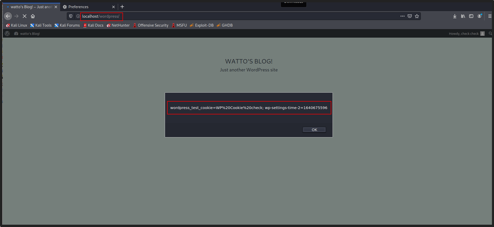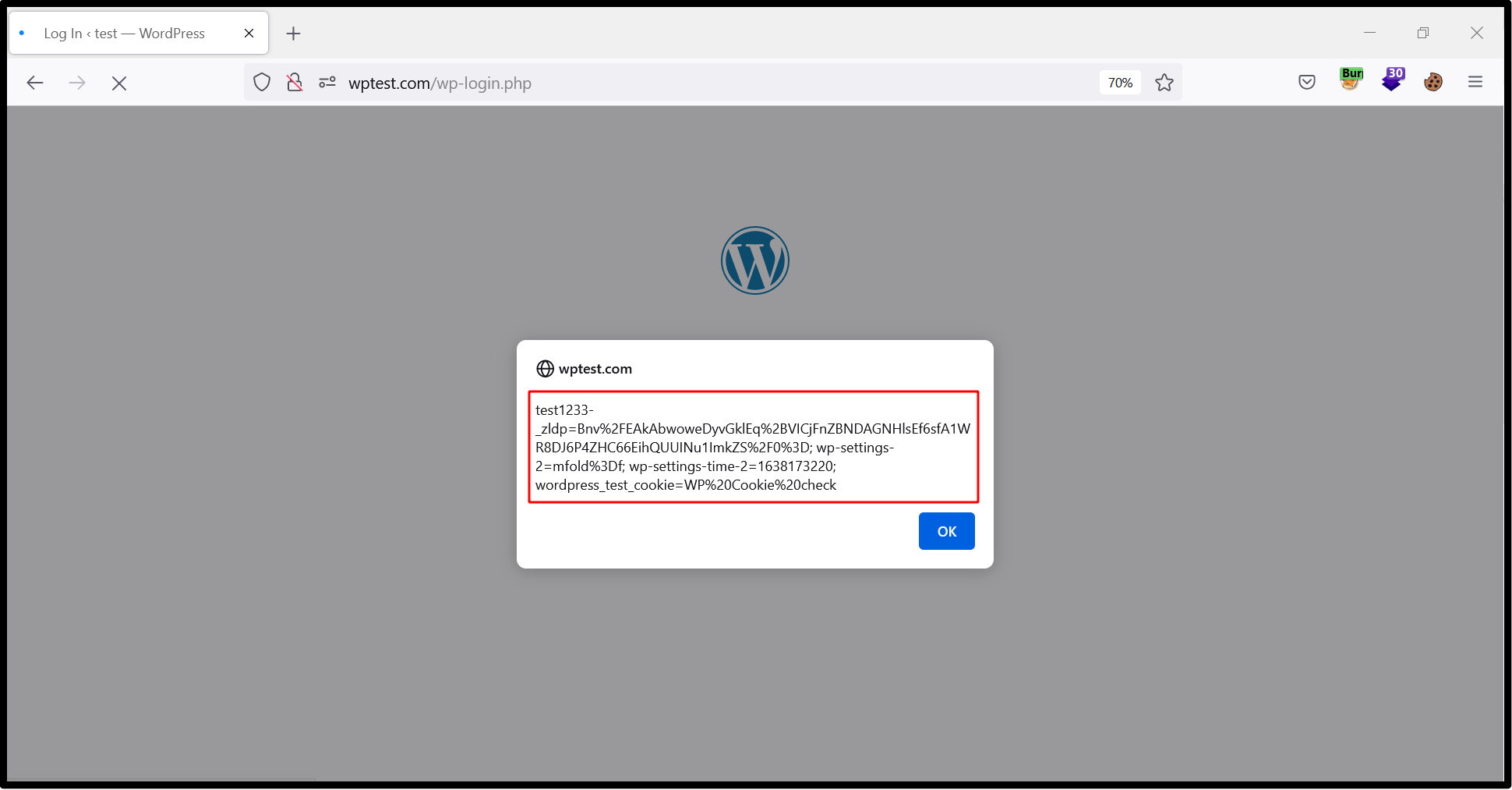 Figure 07: Injected XSS payload is executed displaying an alert box with the contents of the user’s cookies.