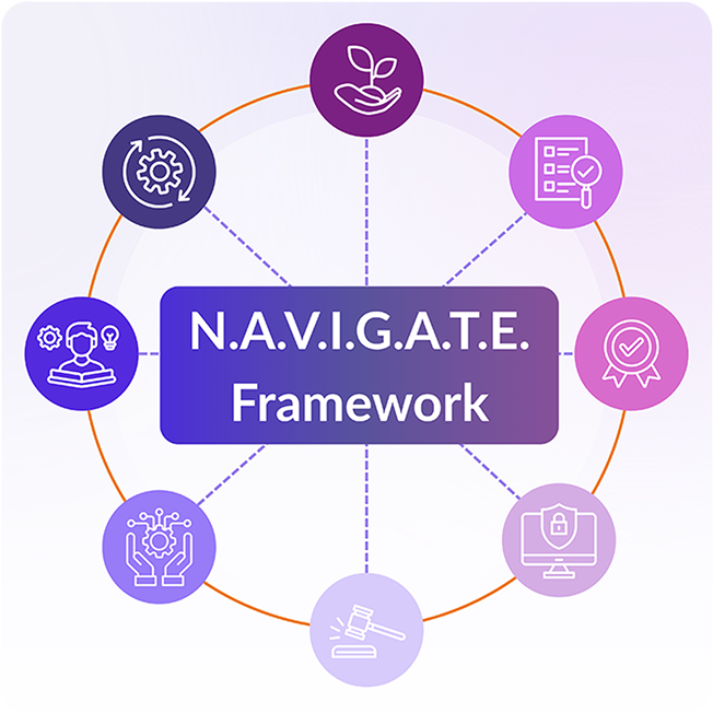 Securin’s unique framework is a structured, humans-first approach that helps organizations to adopt AI responsibly, securely, and effectively.