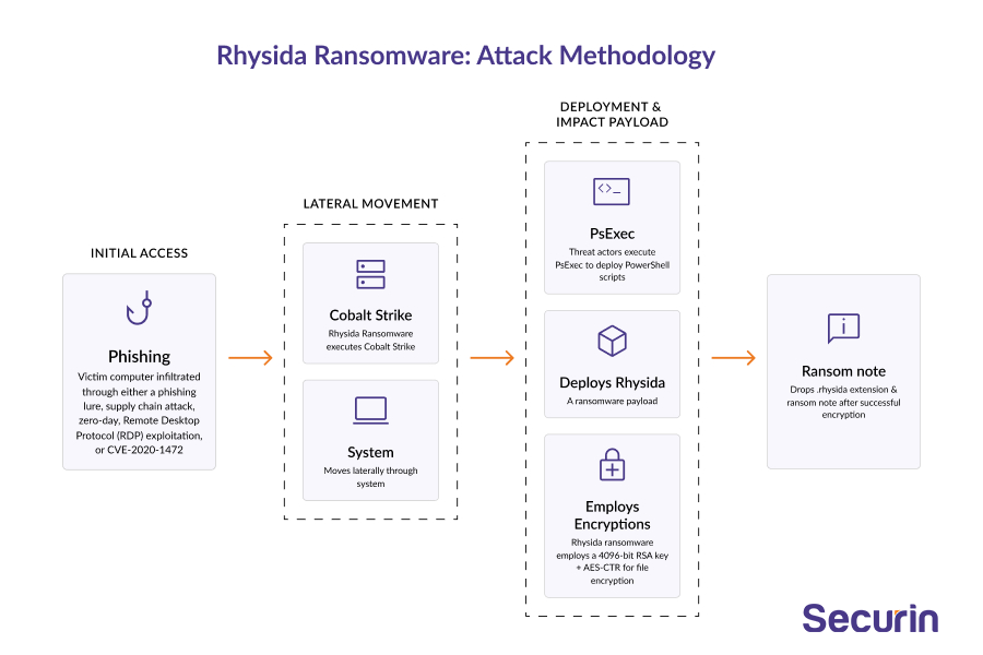 Rhysida ransomware typically spreads through malicious email attachments or downloads from compromised websites. Once it infects a system, it encrypts files and demands a ransom in exchange for the decryption key.