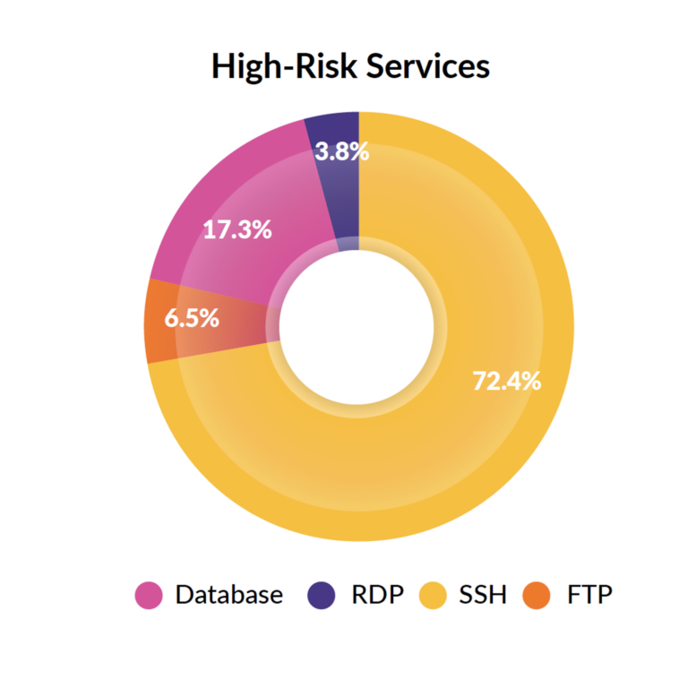 Our scans of state domains uncovered over 2,000 high-risk services operating on these domains. Specifically, we identified 15 instances of unsecured Remote Desktop Protocol (RDP) endpoints that were improperly configured and active on the domains of seven Indian states. This type of misconfiguration poses a significant security risk, as it can provide an entry point for cybercriminals to access sensitive internal resources. Moreover, our analysis also revealed that 293 instances of SSH protocol and 67 instances of FTP were exposed to the internet in 14 and 11 state domains, respectively. These protocols are highly sensitive and should not be exposed to the internet as it increases the likelihood of a successful cyberattack. By identifying these high-risk services, our scans highlight the need for proactive measures to mitigate potential vulnerabilities and enhance the security posture of state domains.