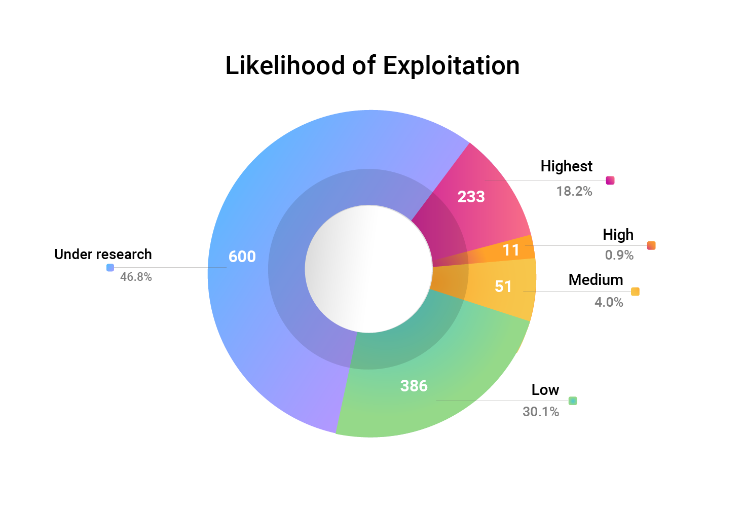 Vulnerabilities with a high likelihood of exploitation: Our early warning predictive analytics assesses vulnerabilities from an attacker’s mindset. Based on hacker chatter and activities on the internet, our researchers have highlighted 18.2% of the identified vulnerabilities as having the highest chances of exploitation.