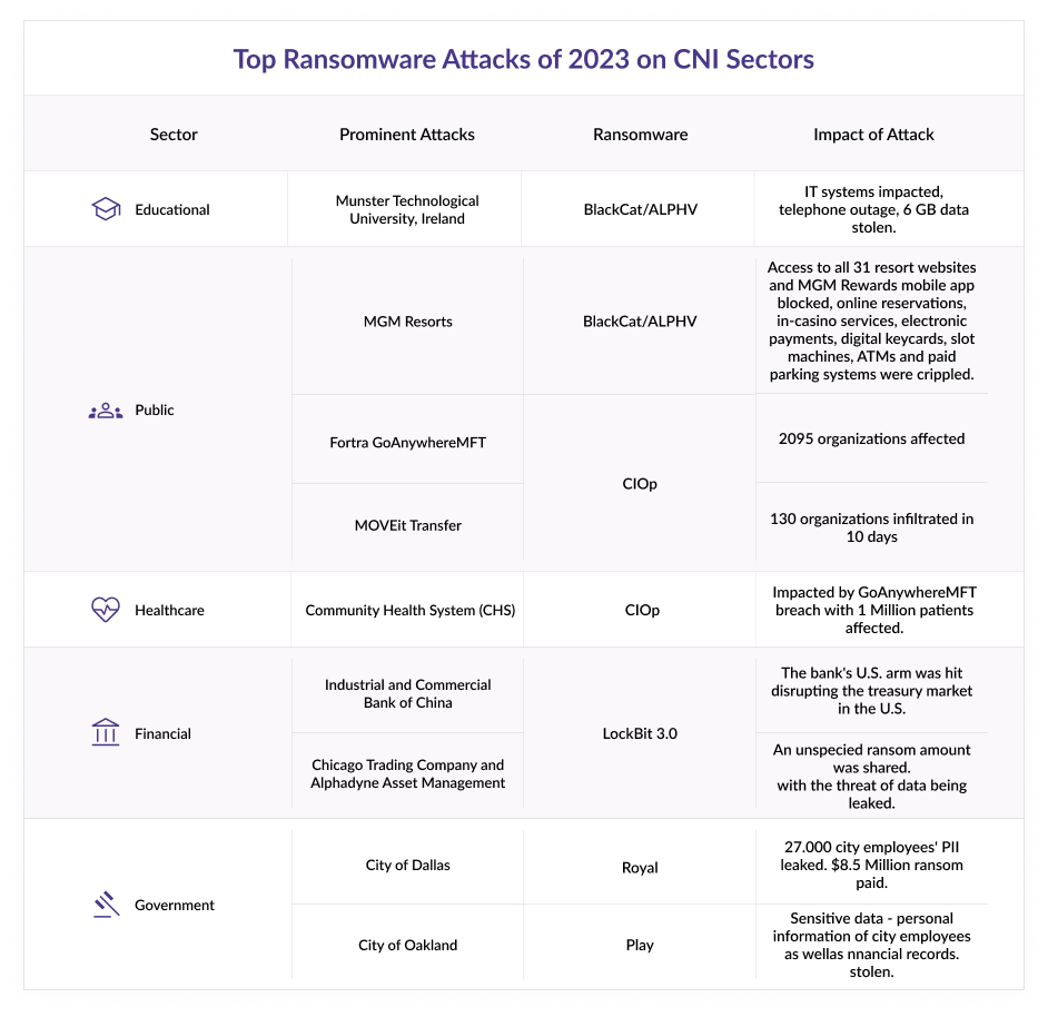 Securin’s recent report conducted a thorough analysis of these attacks, specifically focusing on ransomware incidents. The findings revealed that ransomware groups target entities with vulnerable defenses, high-value data, and substantial user bases. This often includes sectors like healthcare (with confidential patient records), education (containing sensitive information on minors), and finance (such as bank accounts and social security data). Additionally, there is a high likelihood of organizations in these sectors resorting to payouts to mitigate consequences and preserve reputation, especially if they lack the resources to effectively and promptly remediate the breach.