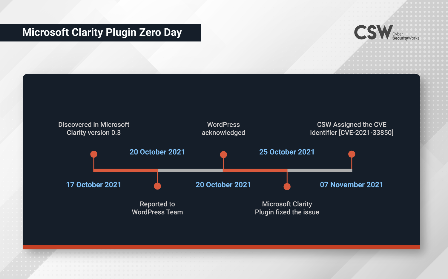 Cyber Security Works has discovered a new zero-day (Cross-Site Scripting) vulnerability, CVE-2021-33850 in WordPress Microsoft Clarity. Microsoft Clarity is an open source analytics tool for websites to track how users interact with your website and the most popular pages. This vulnerability was uncovered by CSW researchers on October 17, 2021.
