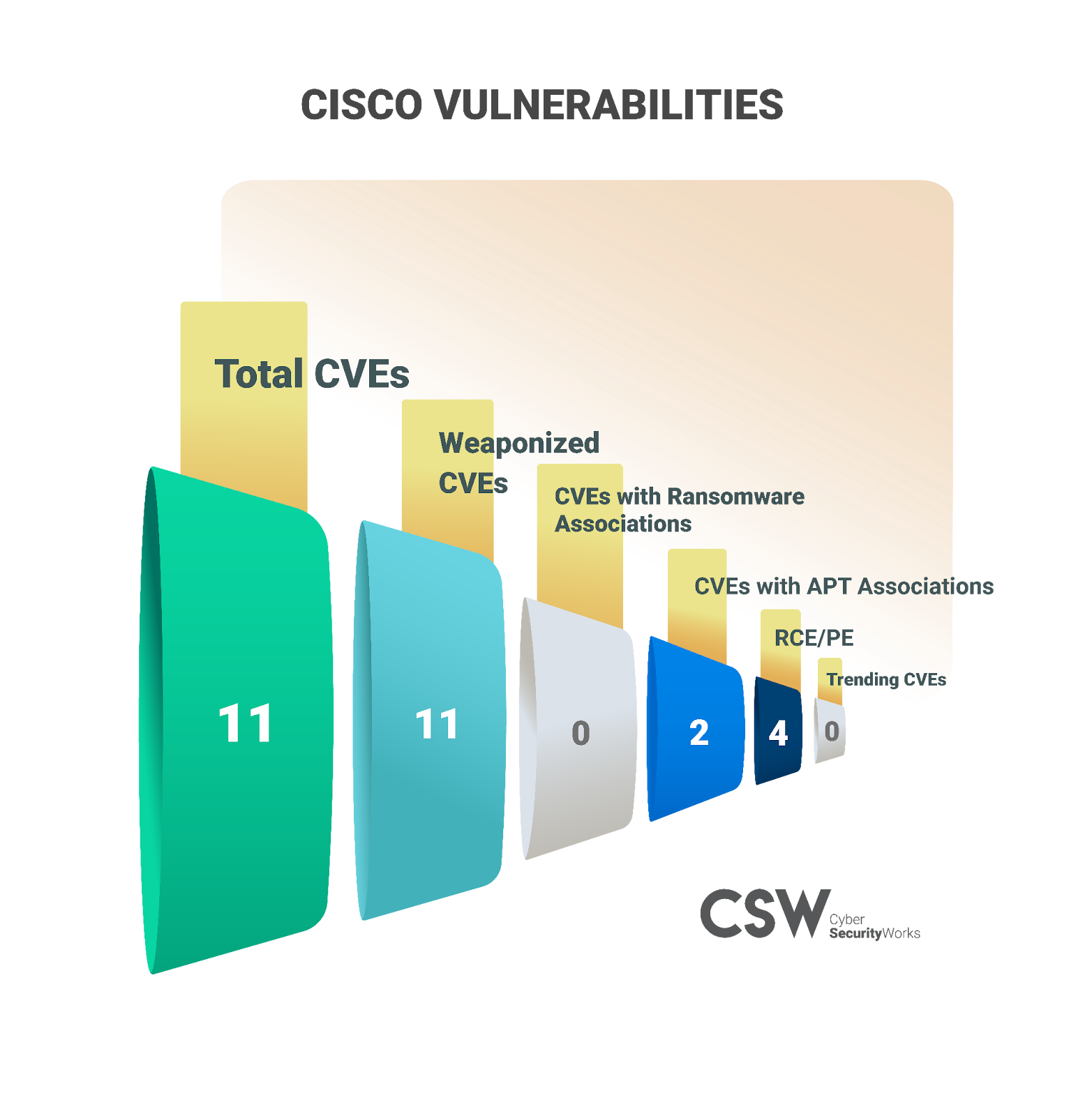 A total of 11 CVEs associated with Cisco products have been identified by CISA in their list of vulnerabilities.