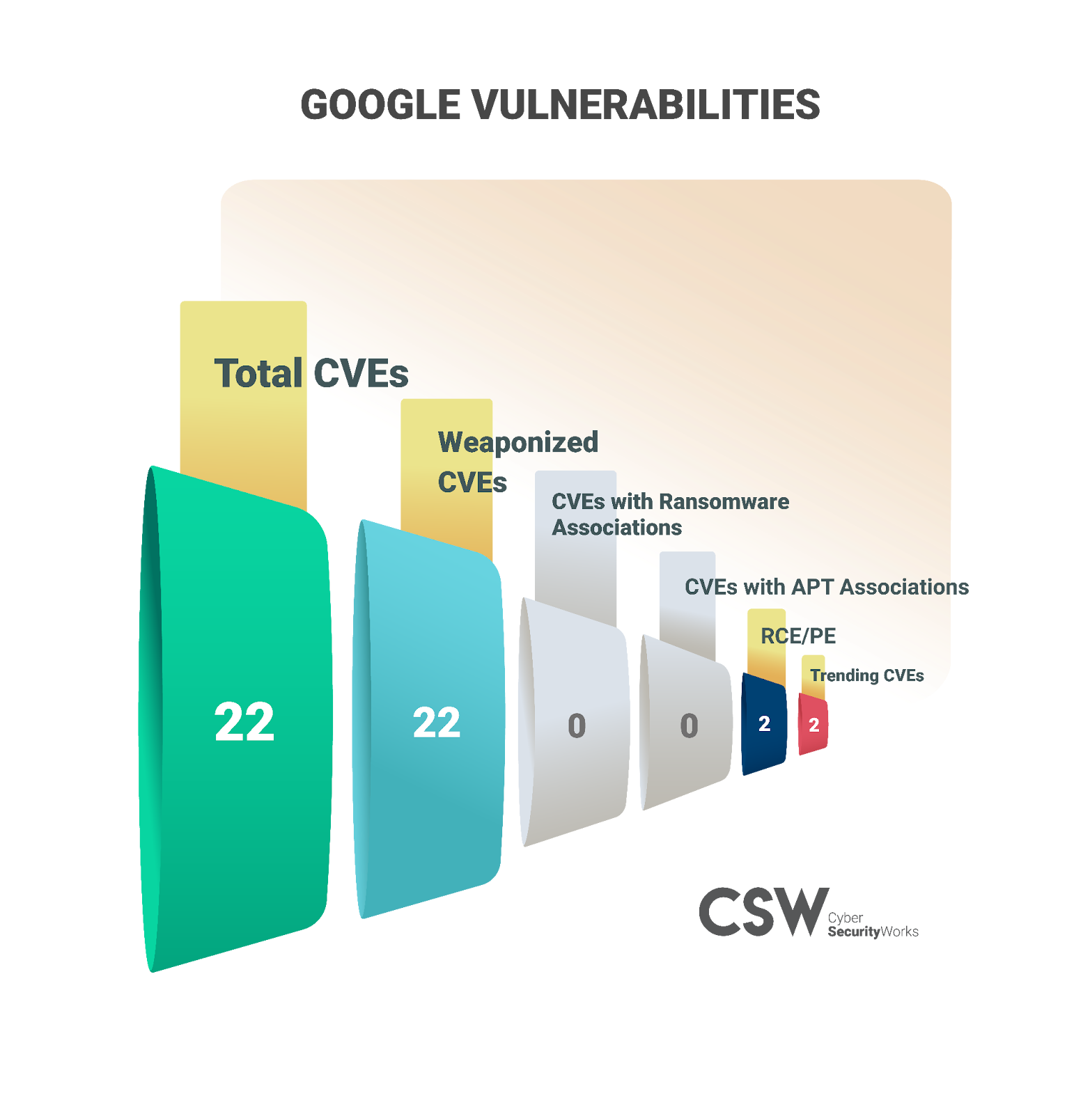 Google takes up a close third place, just below Apple, with 22 vulnerabilities. Of the 22 vulnerabilities, CISA has prioritized 17 for immediate patching.