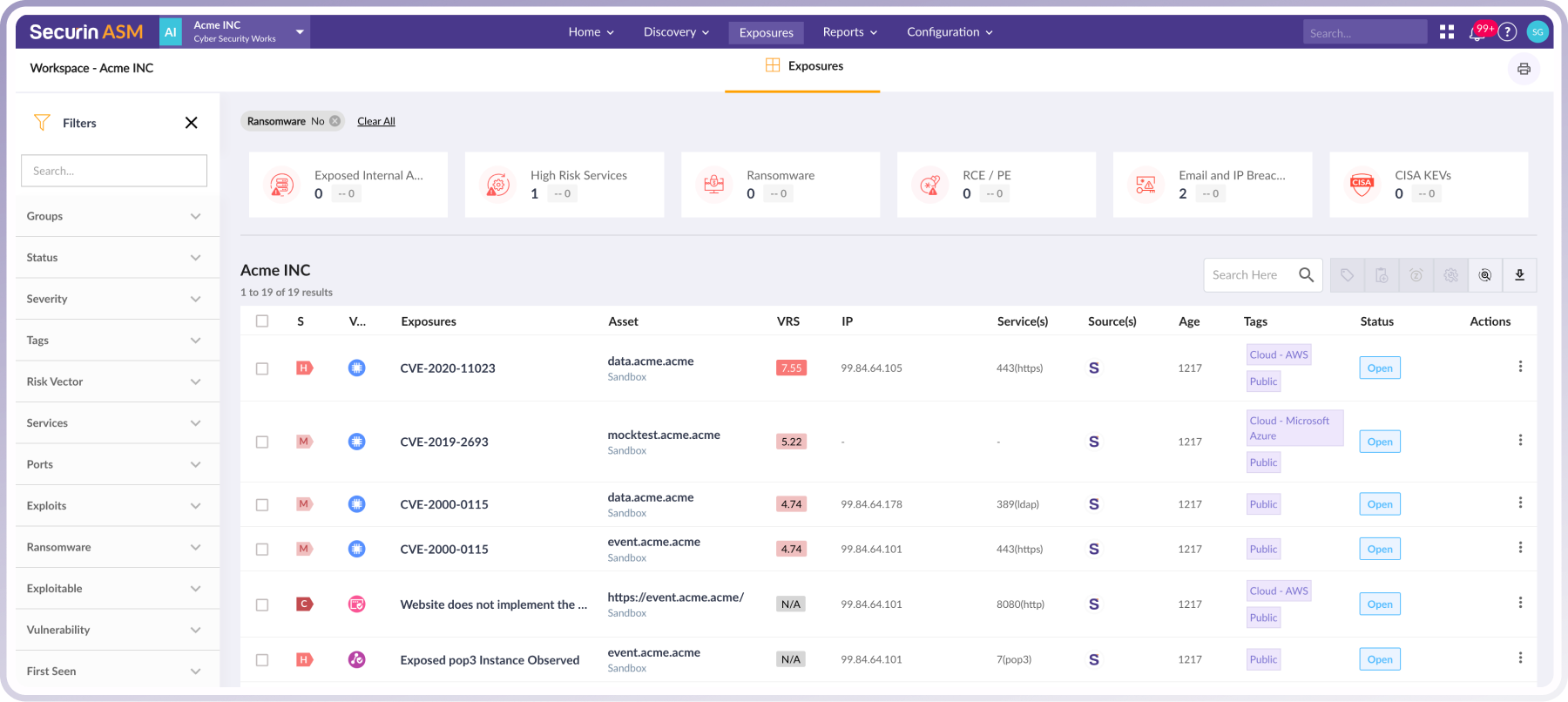 Ransomware is one of the most devastating cyber attacks that can affect an organization. Most organizations take too long to remediate critical exposures and hackers exploit this window of opportunity to attack. That’s why we are comprehensive, definitive, and accurate. Data obtained from our researchers analysis can help you identify whether your organization is exposed to known ransomware vulnerabilities or not. This identifies potential gaps in your security posture allowing you speed up remediate before it’s too late.