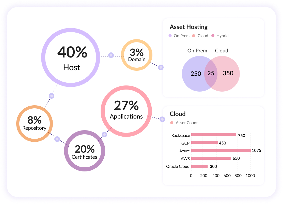 Discover all your assets: internal, external, cloud, containers, APIs, SaaS, and applications (web and mobile). Gain visibility into your organization's known and unknown assets. Securin's platform continuously tracks changing assets and provides in-depth visibility into your attack surface.