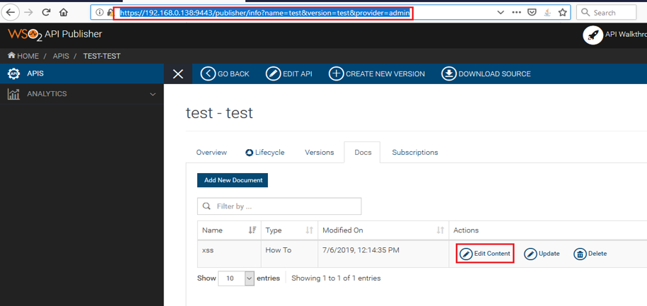 The following vulnerability was tested on the WSO2 API Manager version 2.6.0 Product.