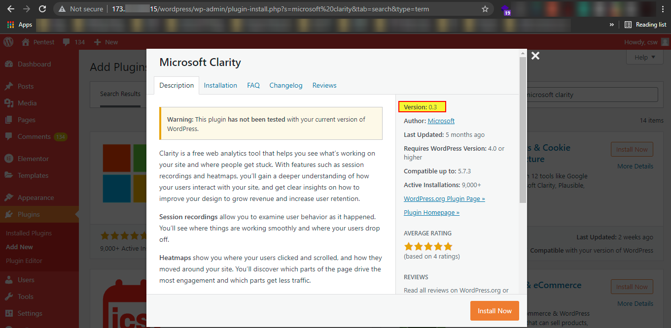 The following vulnerability was detected in WordPress Microsoft Clarity Plugin version 0.3.