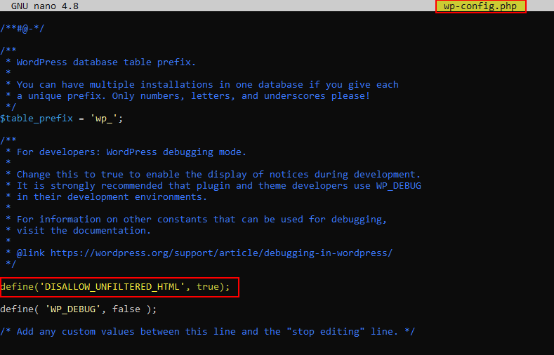 Figure 5: Cross-Site Scripting Mitigation Setting in the wp.config File Prevents Cross-site Scripting Attacks